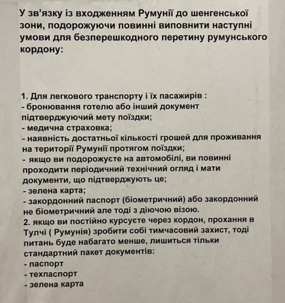 В связи с многочисленными обращениями граждан Украины относительно значительных осложнений при пересечении государственной границы на въезд в Румынию, вызванные дополнительными требованиями контрольных служб Румынии сообщаем следующее.